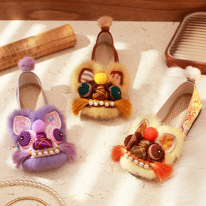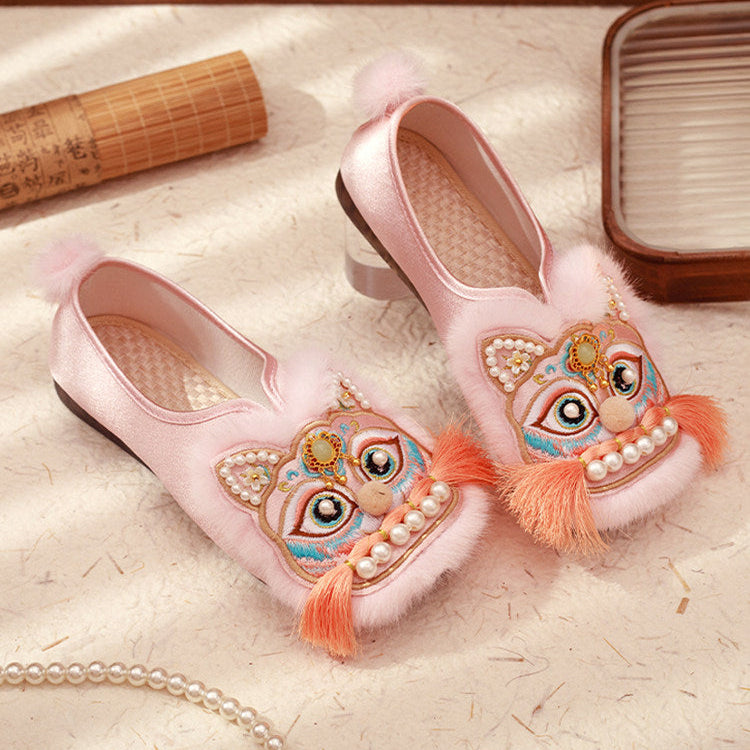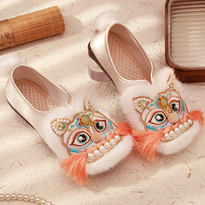 Lucky Tiger | Real Rabbit Fur Embroidered Shoes(福虎)