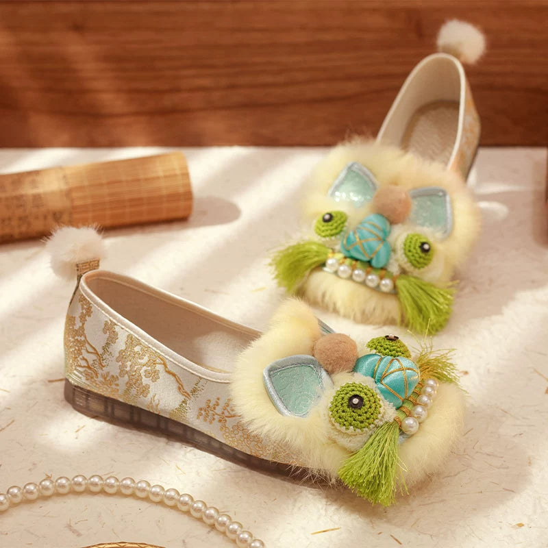 Lucky Tiger | Real Rabbit Fur Embroidered Shoes(福虎纳瑞)