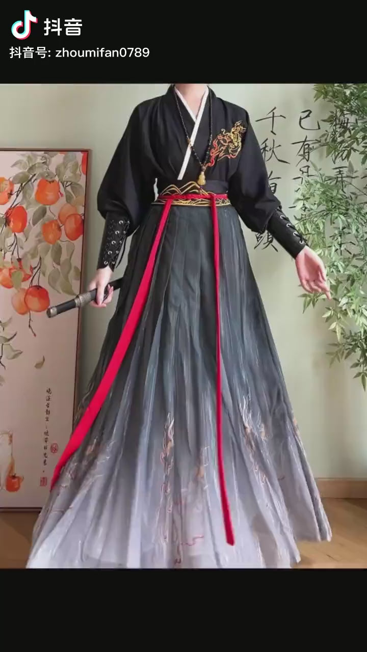 Pájaro de llama | Conjunto Hanfu unisex de 5 piezas (惊鸿)